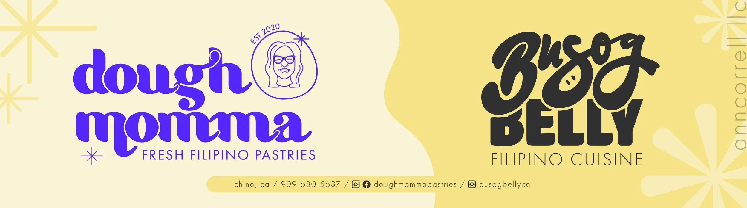 Putting together the banner for Dough Momma and Busog Belly was really fun since we purposefully used yellow in both branding. Before starting with Busog Belly, we knew that eventually we would want to combine both entities in some way so I wanted to tie in both somehow. Using yellow for both of their branding helped join them together but still had a “pop” factor when customers would see the banner. The bright yellow made it engaging, warm, and welcoming.
